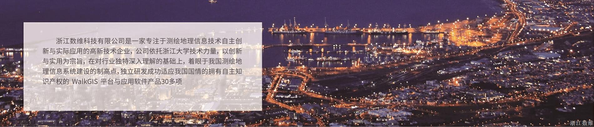 浙江数维是专注于地理信息技术自主创新与实际应用的高新技术企业,公司依托浙江大学技术力量以创新与实用为宗旨,在对行业独特且深入的理解基础上,着眼于我国测绘地理信息系统建设的高点,独立研发成功适应我国国情通拥有自主知识产权的WalkGIS平台与应用软件产品30多款。